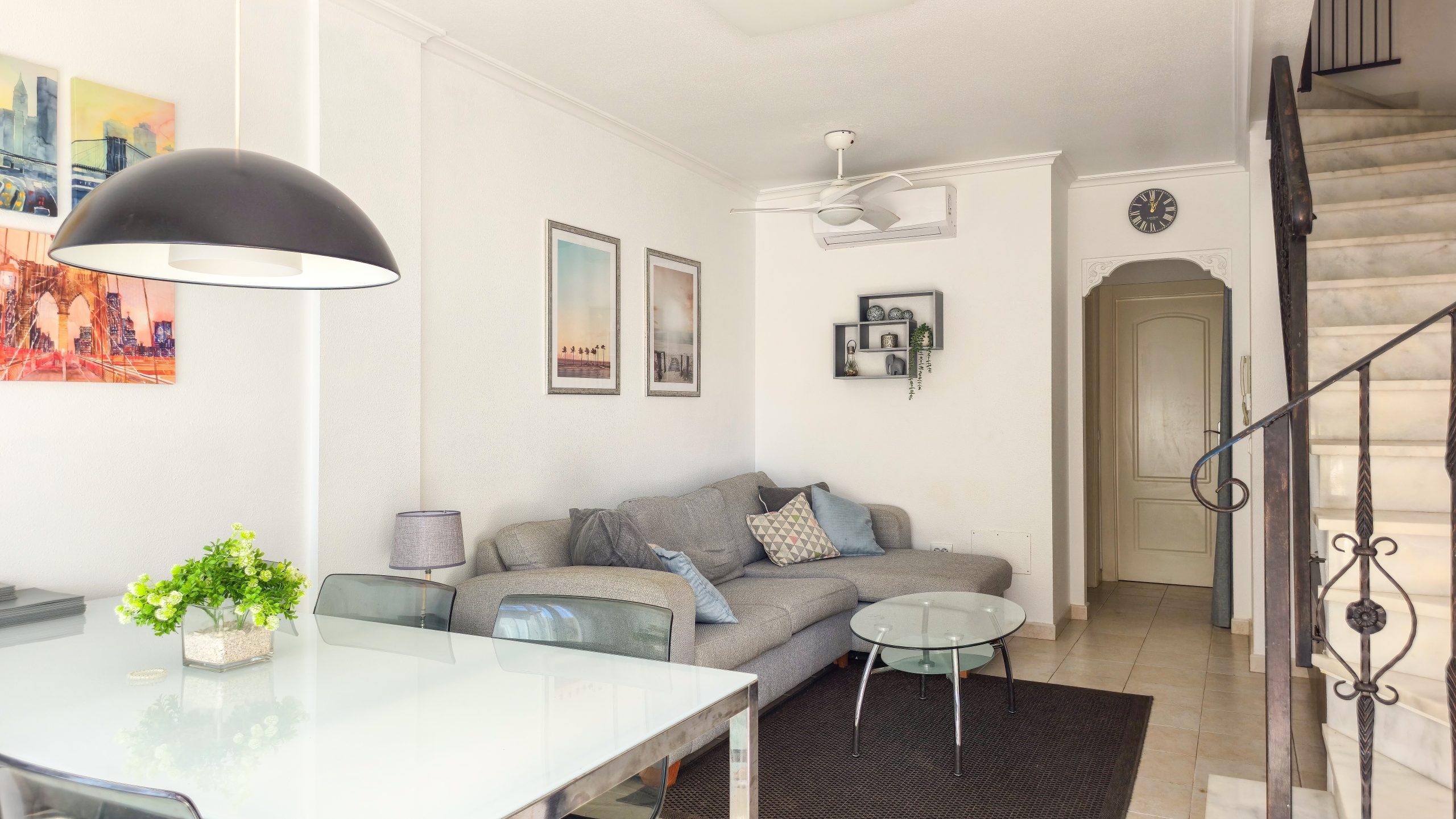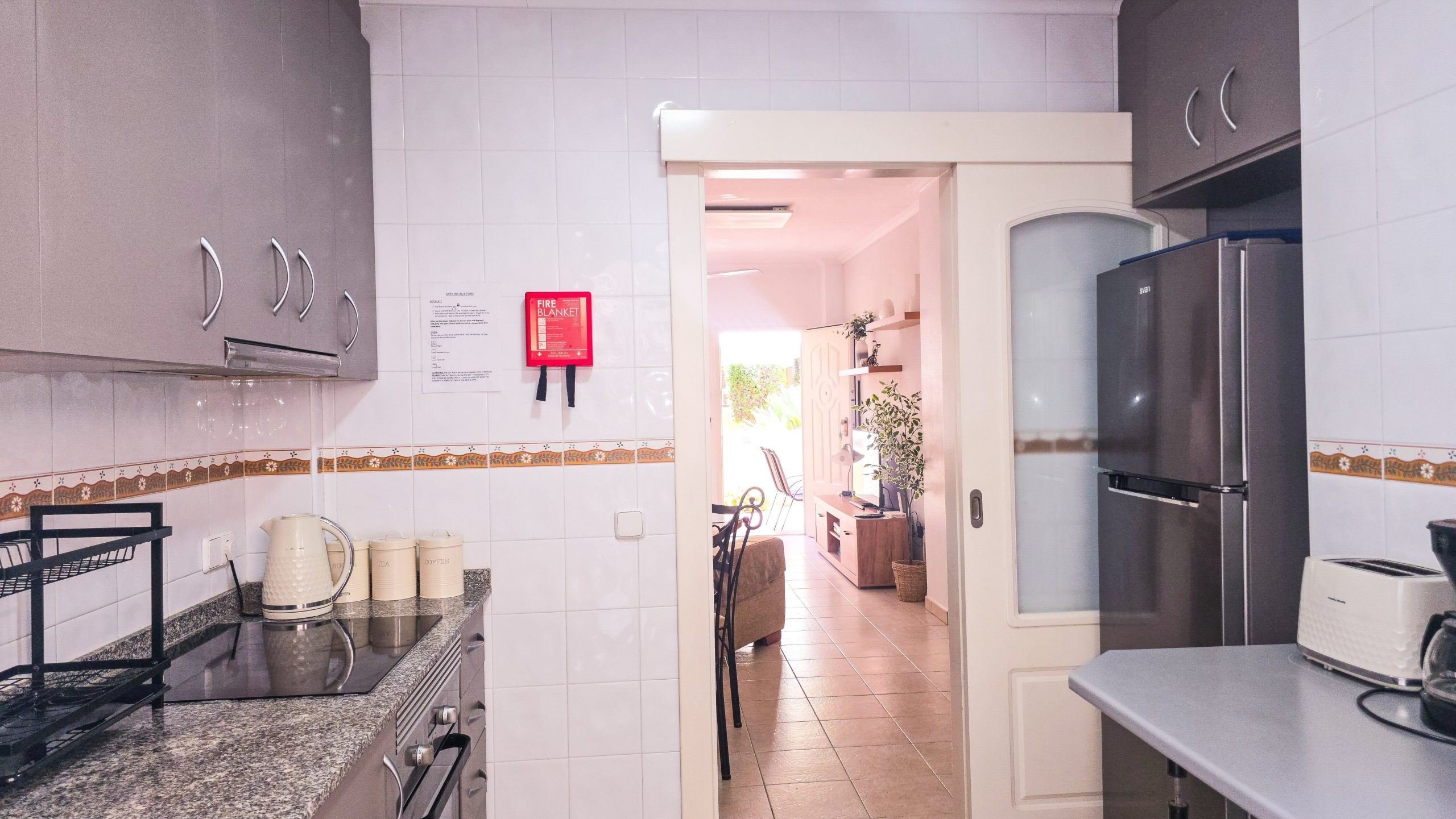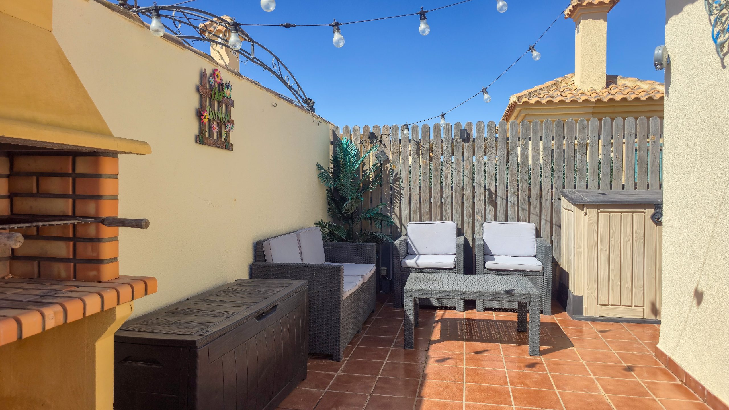 Paul’s Place is a lovely, modern fully furnished house with 3 bedrooms, 2 bathrooms, front and roof terraces both equipped with seating for 6 and stone BBQ’s. The house overlooks a large communal pool and separate children’s pool. The complex is secure with gated access and located in a peaceful area, although only 500 meters from the main Plaza with a host of bars, restaurants and shops and is just a 10-minute stroll to the local beautiful beaches of the Mar Menor.
